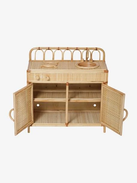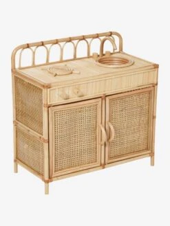 Vous craquez pour la tendance rotin et vous souhaitez faire un enfant heureux ? Alors notre cuisinette est juste parfaite ! Elle se compose sur le dessus d’un Ă©vier avec 2 boutons (eau chaude et eau froide) qui tournent au niveau du robinet, d’une plaque de cuisson et de deux boutons qui tournent pour « allumer » la plaque. En dessous, les enfants pourront ranger tous leurs ustensiles dans les grands placards avec Ă©tagĂšre. IdĂ©ale pour crĂ©er un espace cuisinette 5 Ă©toiles Ă votre enfant, notre jolie cuisinette en rotin est un Ă©lĂ©ment dĂ©co Ă part entiĂšre dans votre intĂ©rieur.
