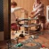 Une grande ferme en bois adaptée aux petites figurines et facilement transportable grâce à sa poignée ! L’enfant peut jouer avec la ferme entière ou la scinder en 2 parties pour accéder plus facilement à l’intérieur. Une fois le jeu terminé, tous les accessoires se rangent dedans.