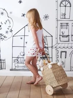 Pour transporter les jouets ou vous accompagner au marché, ce joli panier à roulettes est juste parfait ! Aussi sympa pour jouer que pour décorer la chambre, on l’adore avec ses pompons qui lui donne un petit style ethnique.