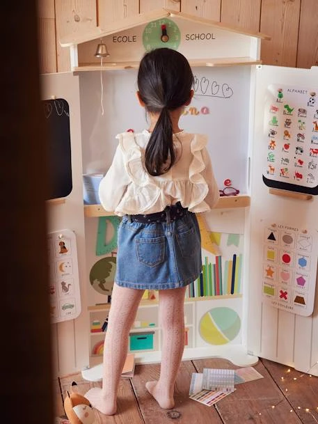 Jouer à la maîtresse n’a jamais été aussi amusant avec cette salle de classe triptyque. Ouvrez les portes et découvrez tout le nécessaire qui permettra aux enfants de prendre la place du maître ou de l’élève ! Des accessoires d’écolier (règle, équerre, rapporteur…), des fiches d’apprentissages, des tableaux noirs… la plus chouette des écoles se trouve à la maison !