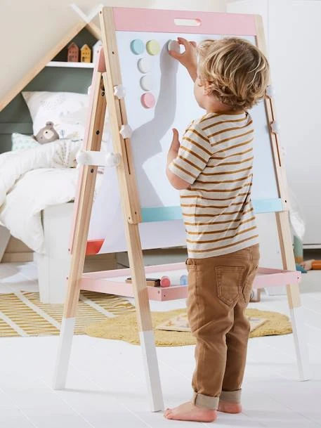 Un joli tableau qui plaira à toutes les graines d’artistes ! 4 en 1, il permet d’exprimer une multitude de talents : une partie tableau noir pour écrire à la craie, 1 partie tableau blanc pour marqueur effaçable, 1 partie plexi pour marqueur effaçable et gouache et 1 rouleau de papier pour afficher ses oeuvres d’art partout dans la maison !